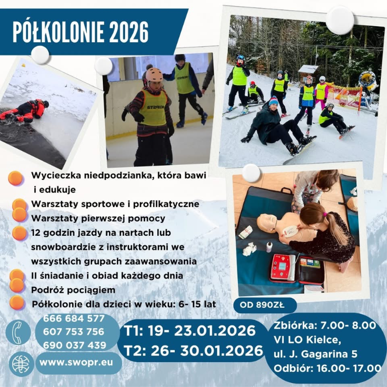 ZIMA 2026 ! Zimowe półkolonie 2026 czas start :) kliknij tu i zapisz Kolejny rok zadbamy o Państwa dzieci podczas zimowego wypoczynku.Jak co roku dopracowaliśmy plan przepełniony na pi...