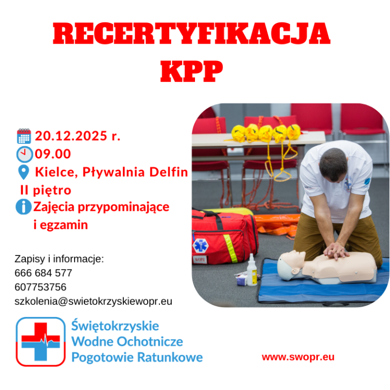 Ratowniku, ważna zminana dotycząca przystąpienia do Recertyfikacji KPP Na podstawie pisma z up. Wojewody Świętokrzyskiego skierowanego do podmiotów organizujących kursy w zakresie kwalifikowanej pierwszej pomocy z terenu województwa świętokrzyskiego przedstawiamy najistotniejsze zmiany. ...